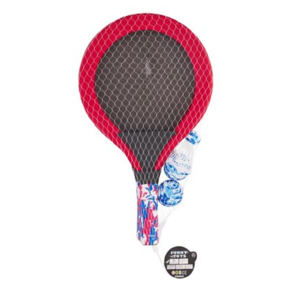 Το σετ περιλαμβάνει δύο ρακέτες με δίχτυ, 2 μπαλάκια και 1 φτερό.
