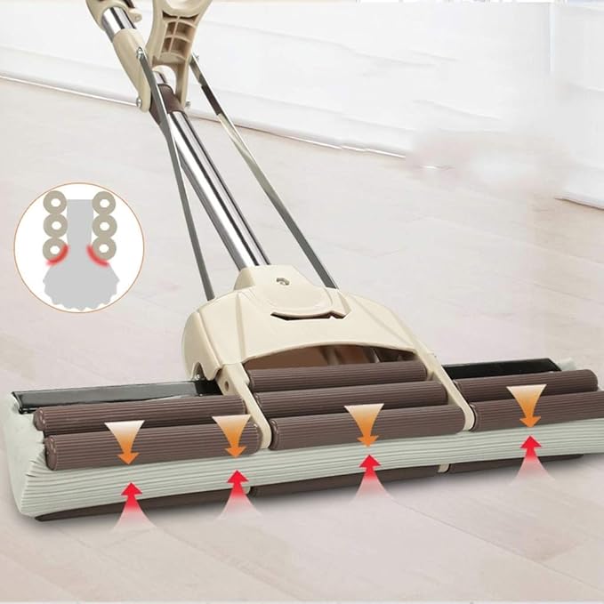Η σφουγγαρένια κεφαλή είναι ιδιαίτερα απορροφητική και κατάλληλη για ξύλινα πατώματα, πλακάκια, μάρμαρο και κάθε τύπο λείων επιφανειών.