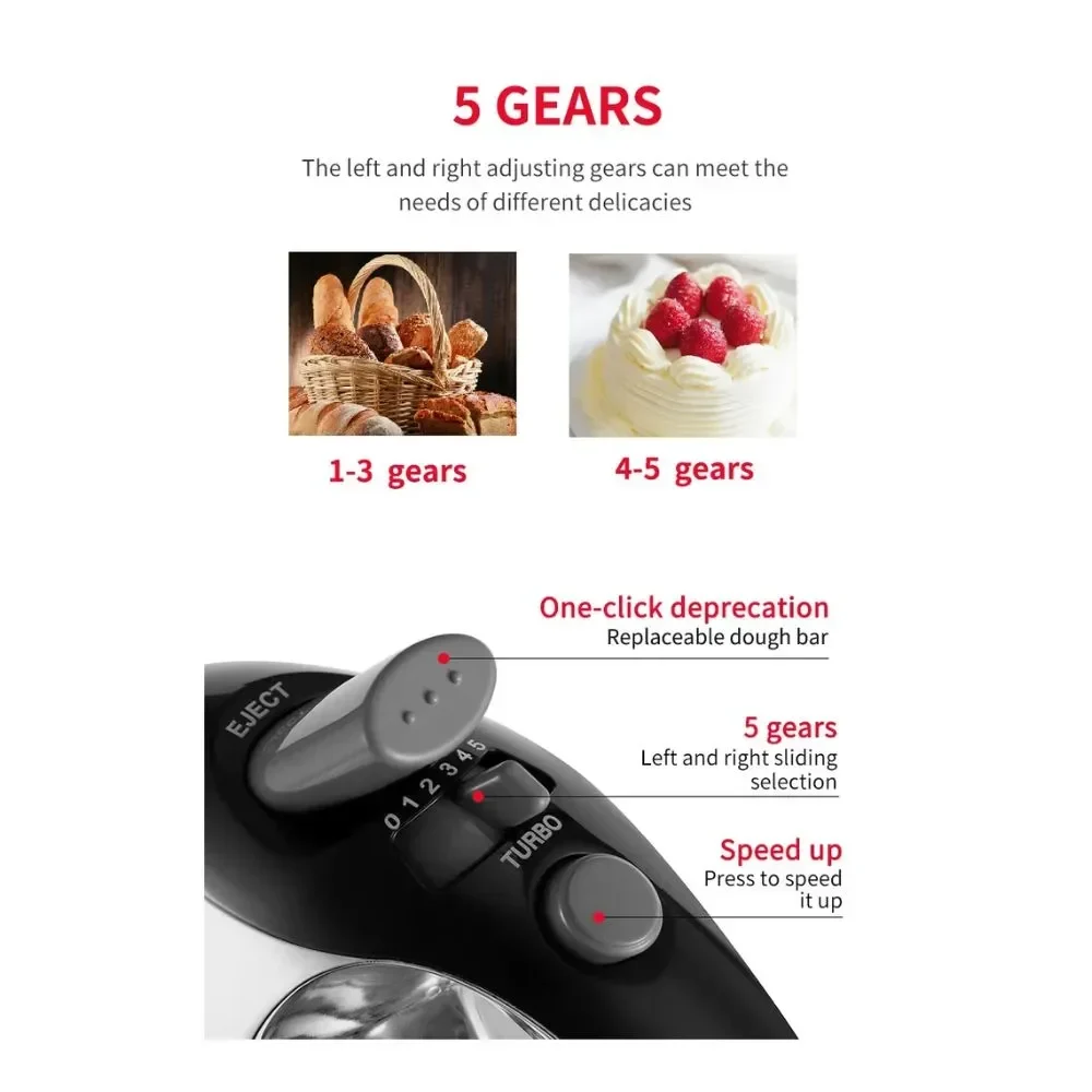 Το μίξερ με κάδο προσφέρει μια απόλυτα πρακτική λύση στο μαγείρεμα σας, εύκολο στη χρήση και στον καθαρισμό είναι κατάλληλο για ζύμωμα, χτύπημα αβγών και είναι γενικώς ιδανική επιλογή για την ανάμειξη τροφίμων.