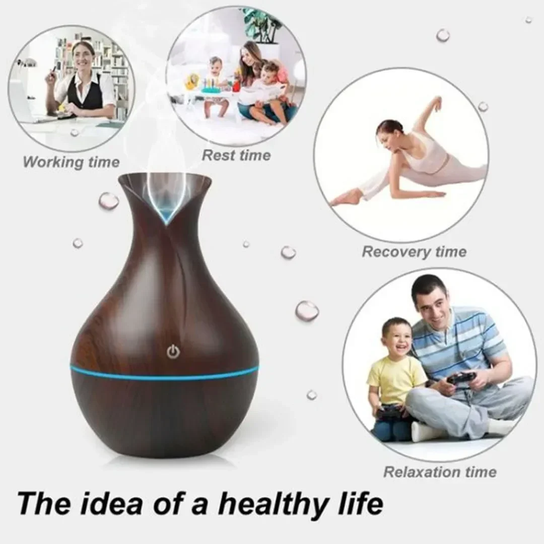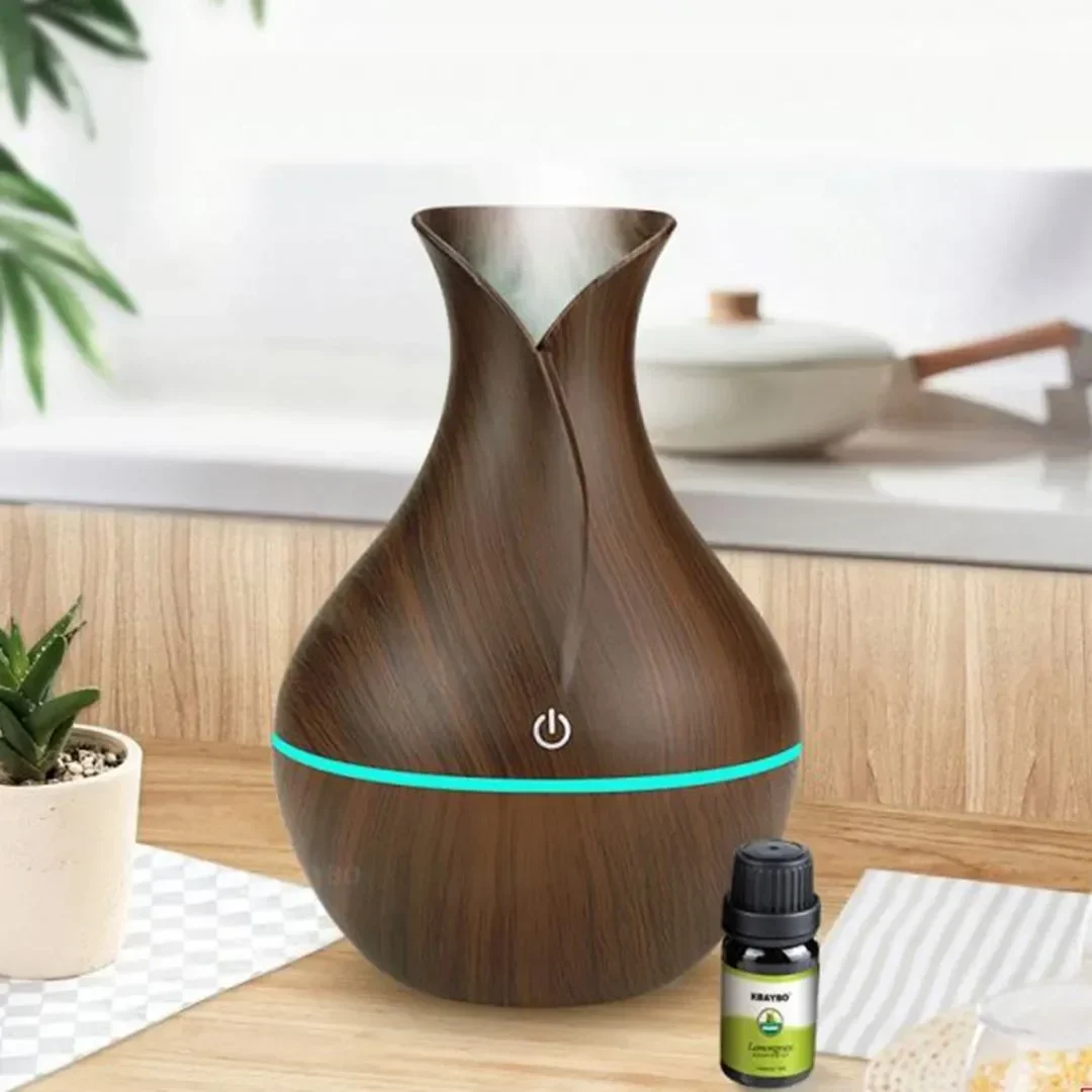Συσκευή Αρωματοθεραπείας και Υγραντήρας Υπερήχων με 7 LED Χρωματισμούς Σκούρο Καφέ Ξύλο