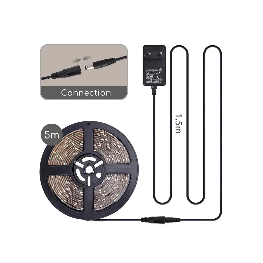 Οδηγίες τοποθέτησης: Η επιφάνεια εφαρμογής πρέπει να είναι καθαρή, στεγνή και χωρίς σκόνη. Έπειτα, πρέπει να κολληθεί η ταινία και να πιεστεί για τουλάχιστον 10 δευτερόλεπτα ώστε να κολλήσει καλά. Τέλος, να συνδεθεί το τροφοδοτικό στο ρεύμα