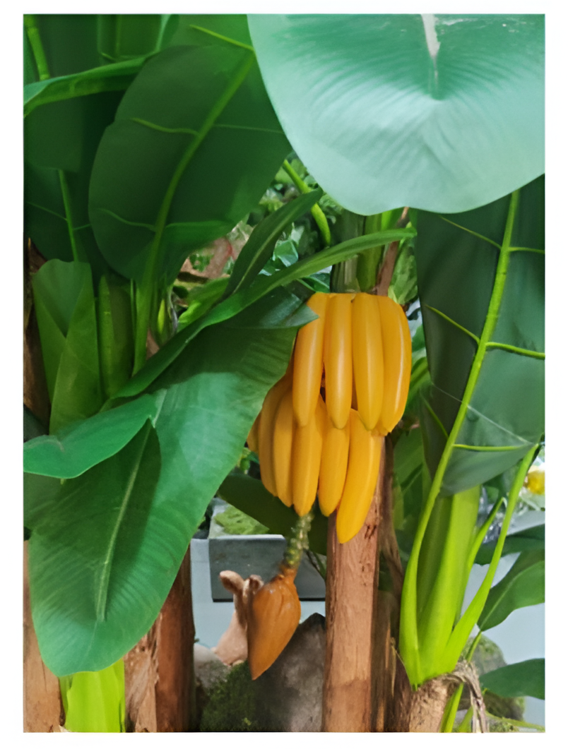 Αυτό το εντυπωσιακό τεχνητό τσαμπί μπανάνες έχει σχεδιαστεί για να προσφέρει μια απόλυτα ρεαλιστική εμφάνιση, αναπαράγοντας πιστά το χρώμα, τη μορφή και τη φυσική καμπυλότητα των καρπών.