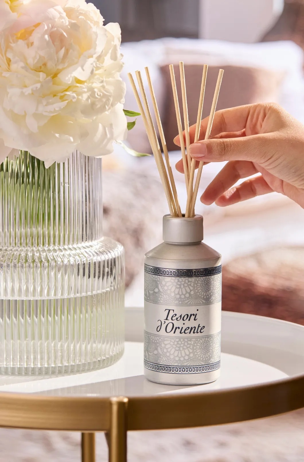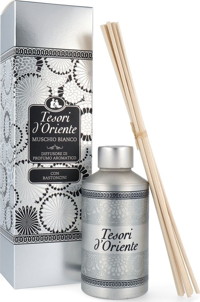 Το αρωματικό χώρου με sticks απελευθερώνει αργά και σταθερά το εκλεπτυσμένο άρωμα του Λευκού Μόσχου.