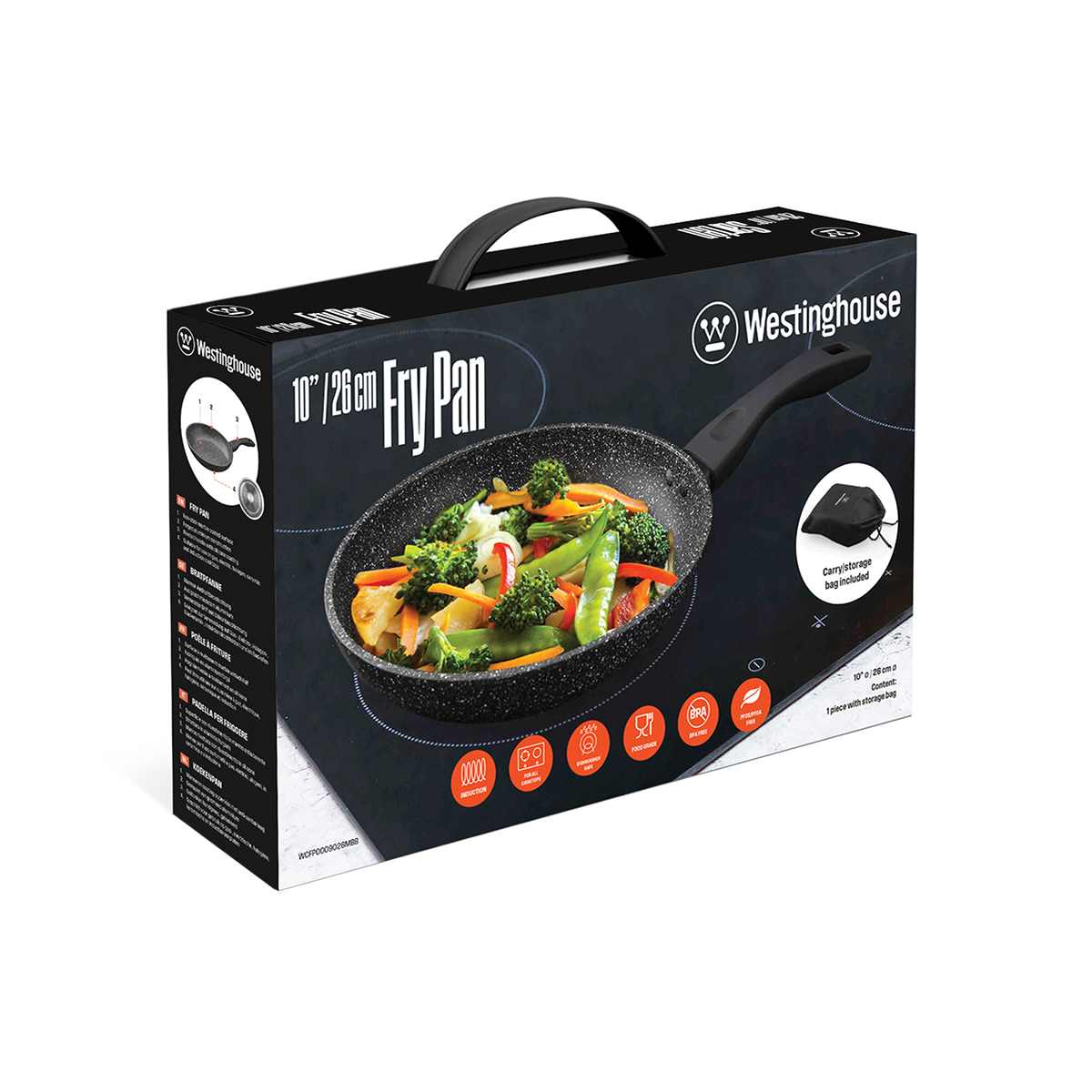 Αντικολλητικό τηγάνι (26 cm) Black Marble Series από την Westinghouse! Πρόκειται για ιδιαιτέρως χρηστικό σκεύος, καθώς ενδείκνυται για την εκτέλεση μεγάλου εύρους συνταγών, ενώ προσφέρεται για χρήση σε κάθε εστία και καθαρίζεται εύκολα στο χέρι ή στο πλυντήριο πιάτων χάρη στην διπλή αντικολλητική επίστρωση μαύρου μαρμάρου. Παράλληλα, το κομψό, high-end design του τηγανιού, σε συνδυασμό με την μοναδική συσκευασία του, το καθιστούν ιδανικό δώρο.