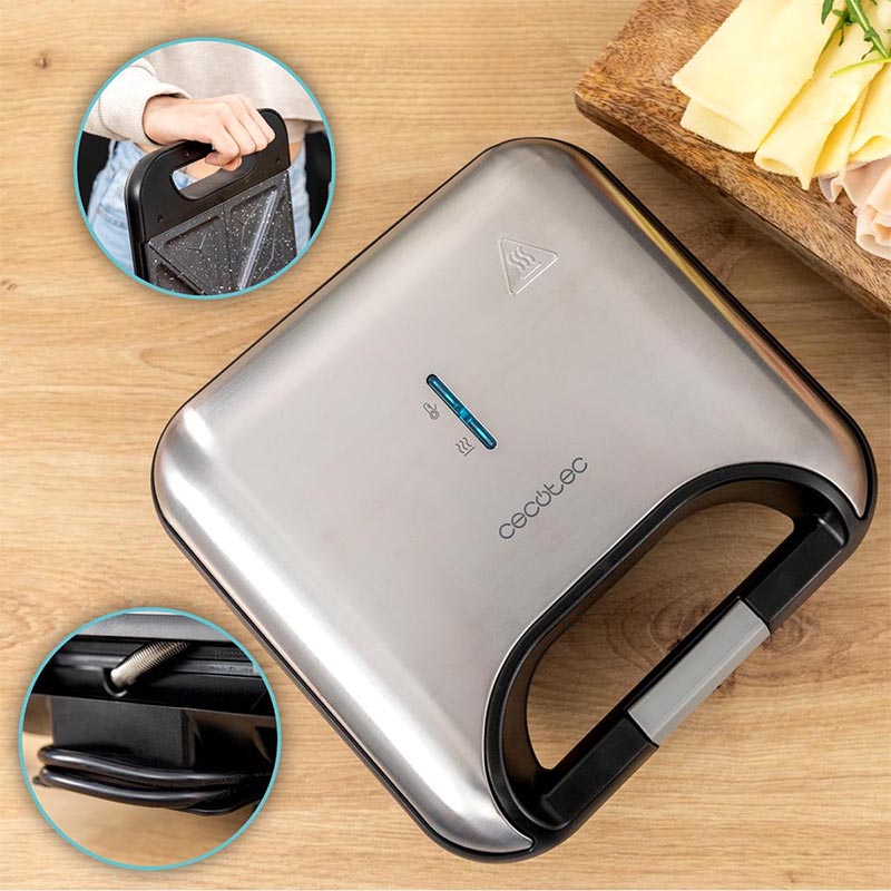 Η τοστιέρα Rock’nToast Classic + της Cecotec συνδυάζει απόδοση και λειτουργικότητα, προσφέροντας πεντανόστιμα αποτελέσματα σε κάθε χρήση. Με πλάκες διαστάσεων 21 x 12.5 cm και φινίρισμα από ανοξείδωτο ατσάλι, εξασφαλίζει υψηλή και μακροχρόνια ανθεκτικότητα, ενώ χάρη στην οικολογική αντικολλητική επίστρωση RockStone, προσφέρει υγιεινά γεύματα χωρίς τη χρήση υπερβολικών λιπαρών. Η ασφαλής αποθήκευση και μεταφορά είναι εγγυημένη με το κλείδωμα ασφαλείας και τη χειρολαβή «cool touch». Η ειδική υποδοχή για το καλώδιο προσφέρει επιπλέον ευκολία στη χρήση.