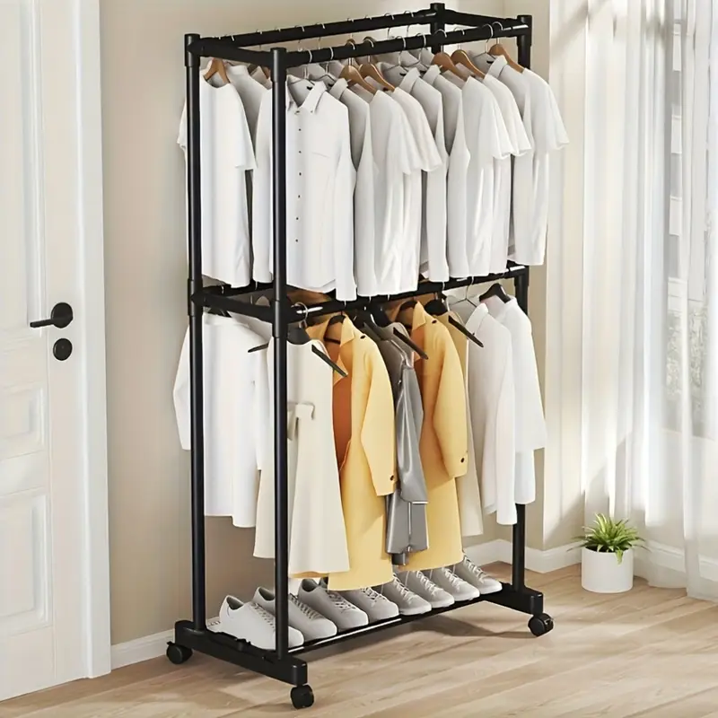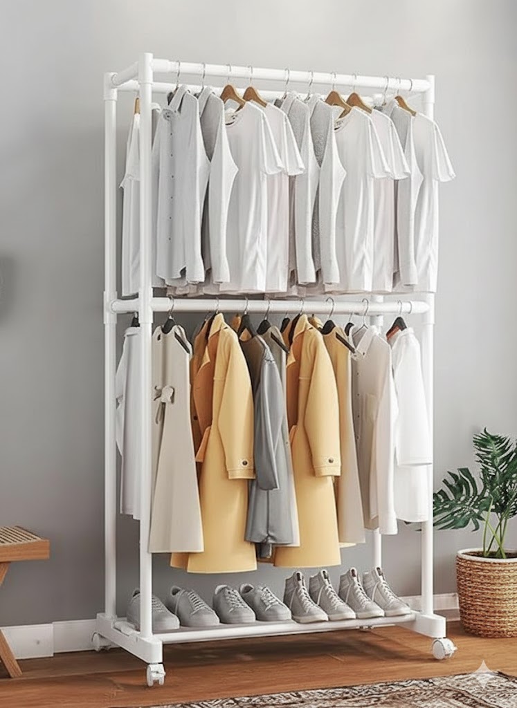 Διαθέτει δύο επίπεδα για κρέμασμα ρούχων και ένα χαμηλότερο ράφι που αντέχει έως και 10 κιλά, ιδανικό για παπούτσια, κουτιά ή άλλα αντικείμενα.
