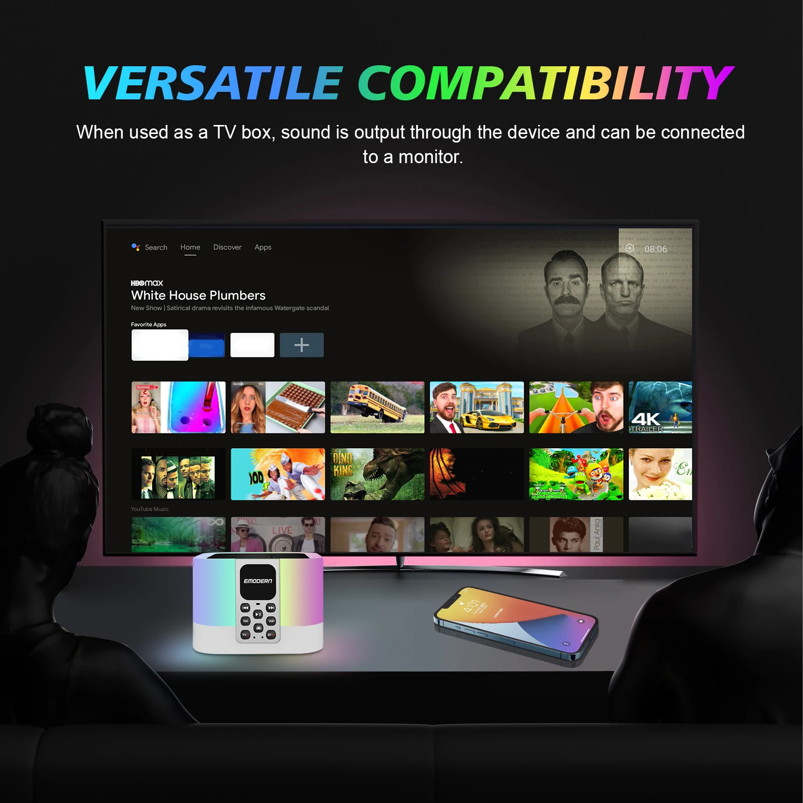 Το TV Box Andowl TV6 Mate συνδυάζει κορυφαία τεχνολογία πολυμέσων με εντυπωσιακό φωτισμό RGB, προσφέροντας μοναδική εμπειρία ψυχαγωγίας.
