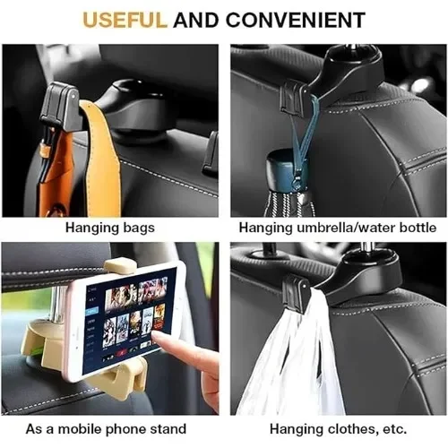 Σχεδιασμός 2 σε 1 για μέγιστη άνεση: Αυτά τα άγκιστρα αυτοκινήτου χρησιμεύουν και ως βάση κινητού τηλεφώνου και ως άγκιστρο τσάντας, επιτρέποντάς σας να κρατάτε τα χέρια σας ελεύθερα ενώ βρίσκεστε εν κινήσει. Συμβατά με τα περισσότερα τηλέφωνα πλάτους 1,9~3,5 ίντσες, είναι ιδανικά για να κρατάτε παντοπωλεία, τσάντες για ψώνια, πορτοφόλια, βρεφικά είδη και άλλα.