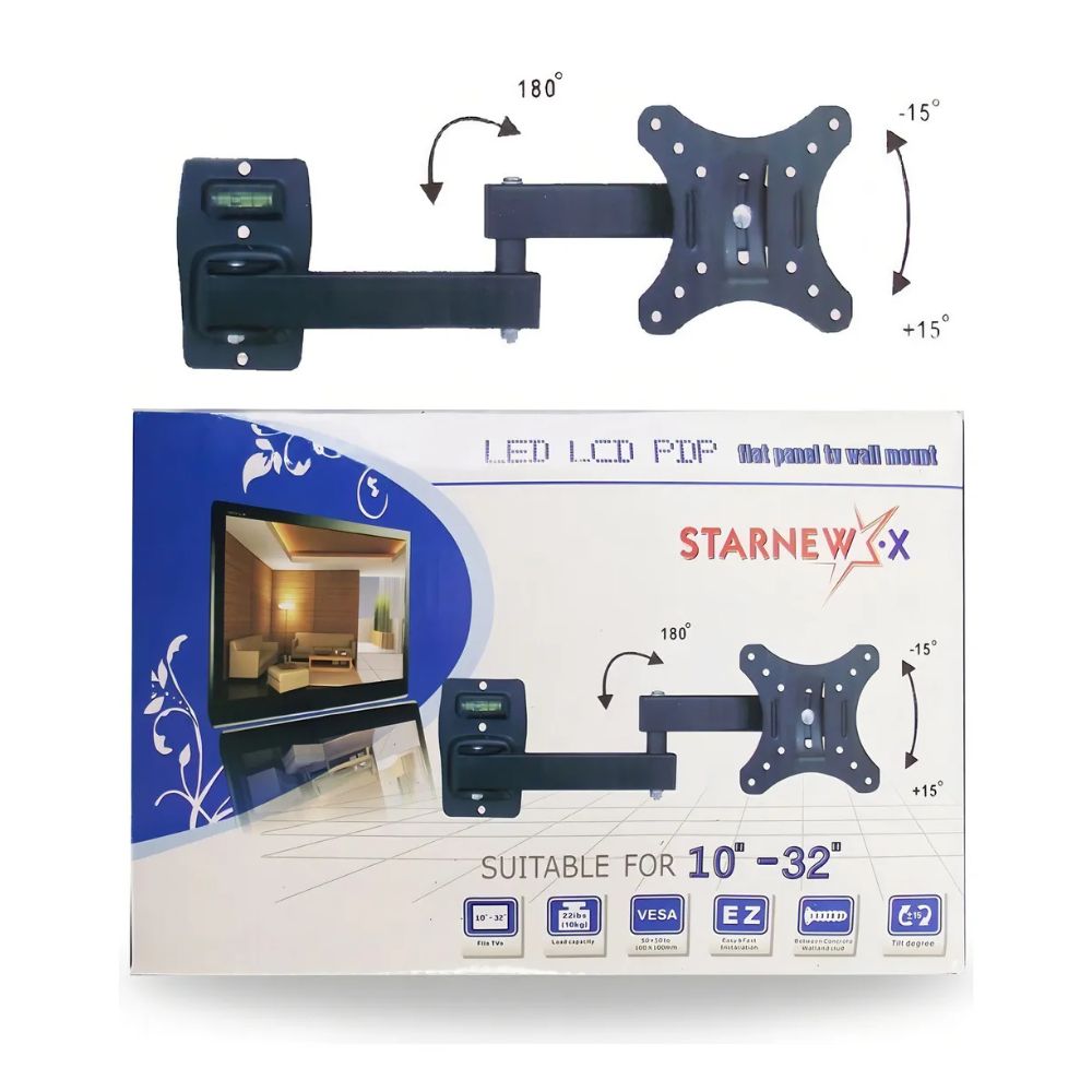 Κατάλληλη για τηλεοράσεις από 10 έως 32 ίντσες, διαθέτει αρθρωτό βραχίονα, που επιτρέπει εύκολη ρύθμιση της γωνίας, με δυνατότητα κλίσης, περιστροφής και επέκτασης, ώστε να προσαρμόζετε την οθόνη ακριβώς όπως σας εξυπηρετεί.