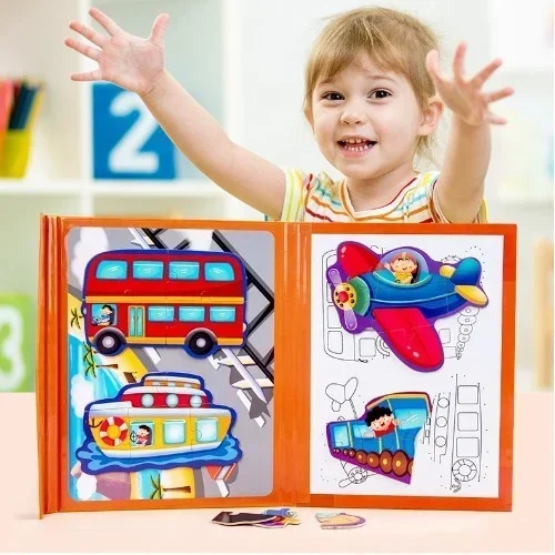 -μαγνητικό παζλ, με όμορφη εικονογράφηση φόντου και ξύλινα μέρη, με εικόνες.