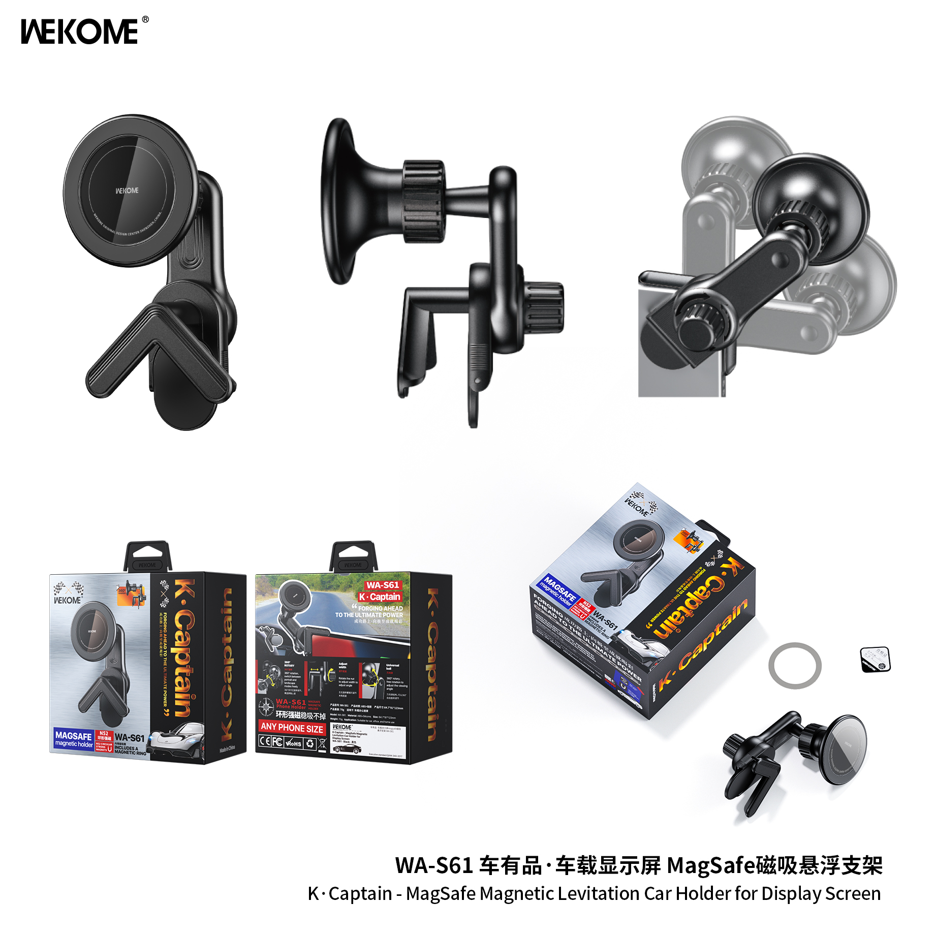 Η WEKOME WA-S61 είναι μια μαγνητική βάση κινητού τηλεφώνου για το αυτοκίνητο, σχεδιασμένη ειδικά για οχήματα με υπερυψωμένη οθόνη.