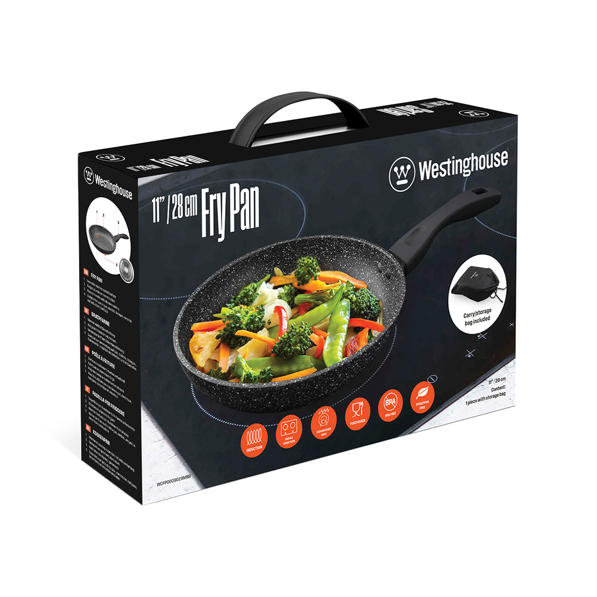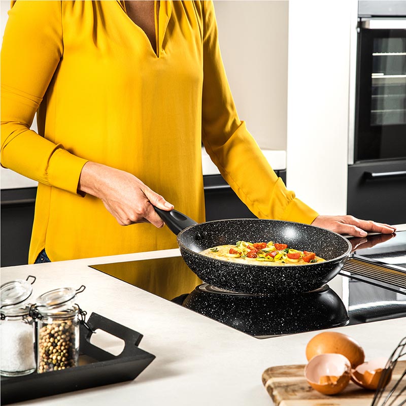 Αντικολλητικό τηγάνι (28 cm) Black Marble Series από την Westinghouse! Πρόκειται για ιδιαιτέρως χρηστικό σκεύος, καθώς ενδείκνυται για την εκτέλεση μεγάλου εύρους συνταγών, ενώ προσφέρεται για χρήση σε κάθε εστία και καθαρίζεται εύκολα στο χέρι ή στο πλυντήριο πιάτων χάρη στην διπλή αντικολλητική επίστρωση μαύρου μαρμάρου. Παράλληλα, το κομψό, high-end design του τηγανιού, σε συνδυασμό με την μοναδική συσκευασία του, το καθιστούν ιδανικό δώρο.
