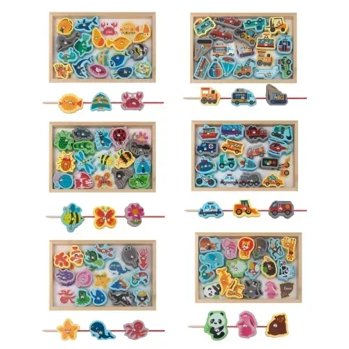 Σας παρουσιάζουμε τα ξύλινα παιχνίδια ψαρέματος! Ιδανικό για να αναπτύξει το παιδί σας λεπτές κινητικές δεξιότητες με παιχνίδια με χάντρες και ρεαλιστικό σχέδιο. Χωρίς αιχμηρές άκρες, είναι μια ασφαλής και διασκεδαστική προσθήκη στον χρόνο παιχνιδιού του παιδιού σας.