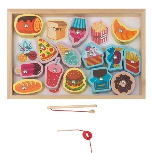 Με έναν ευφάνταστο συνδυασμό παιχνιδιών ψαρέματος και παιχνιδιών με χάντρες, αυτό το ξύλινο παιχνίδι ψαρέματος διαθέτει ένα μαγνητικό χαρακτηριστικό που αιχμαλωτίζει αβίαστα τα πολύχρωμα ψάρια και τις χάντρες, προάγοντας τις κινητικές δεξιότητες του παιδιού σας και τον συντονισμό χεριού-ματιού.