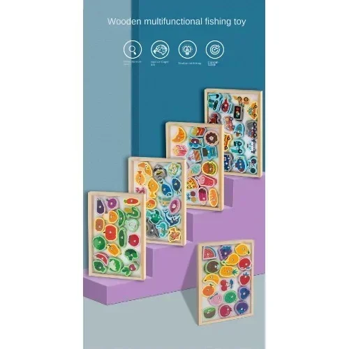 Αφήστε τα παιδιά σας να μάθουν διασκεδάζοντας με αυτό το ξύλινο παιχνίδι ψαρέματος. Αναπτύσσει διάφορες δεξιότητες όπως η ενίσχυση της δημιουργικότητας, ο συντονισμός χεριού-ματιού, η πρακτική ικανότητα, οι λεπτές κινητικές δεξιότητες και η ικανότητα σκέψης. Το παιχνίδι διδάσκει για τα ψάρια, τα χρώματα, τα σχήματα και τους αριθμούς.