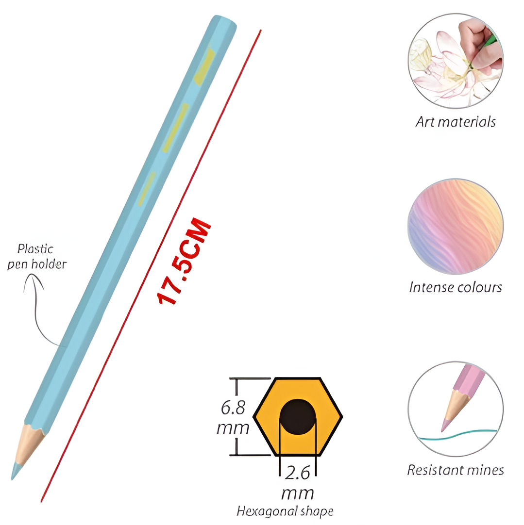 Αυτό το σετ ξυλομπογιών περιλαμβάνει 12 απαλά χρώματα τύπου macaron και αποτελεί εξαιρετική επιλογή για ζωγραφική, σχέδιο και δημιουργικές δραστηριότητες για παιδιά και ενήλικες.
