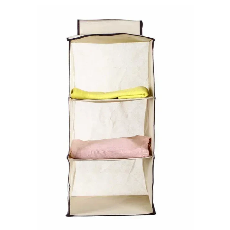 Υφασμάτινη Κρεμαστή Θήκη Αποθήκευσης Ρούχων Μπεζ Με 3 Ράφια 30x30x60εκ 34348 αξιοποιήστε έξυπνα και λειτουργικά το χώρο σας!!!